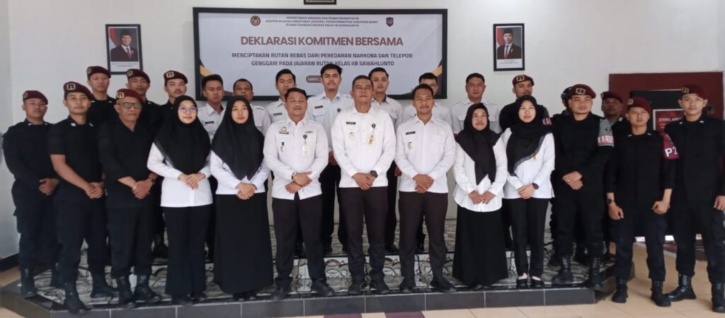 ” Kepada seluruh jajaran Rutan Sawahlunto saya tegaskan agar dapat melaksanakan komitmen bersama ini dengan baik guna mempertahankan dan meningkatkan kondisi Rutan yang terbebas dari peredaran narkoba dan penggunaan HP ilegal. Semoga dengan kegiatan ini dapat menanamkan tanggung jawab dalam diri masing-masing bahwa selain menjalankan tugas pokok dan fungsi sebagai petugas Rutan, saudara juga memiliki tanggung jawab untuk merealisasikan ikrar dan janji yang telah kita ucapkan bersama-sama tadi” ujar Dedi.