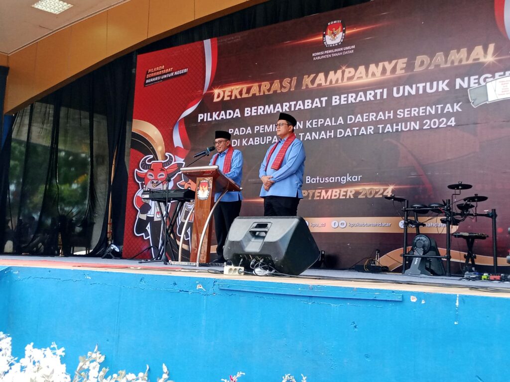Dalam Deklarasi Kampanye Damai tersebut Pasangan Calon (Paslon) Nomor Urut 2, Eka Putra-Ahmad Fadly Suirsyam (Eka-Fadly) mengajak seluruh masyarakat Tanah Datar untuk menjaga suasana kondusif dalam rangka mensukseskan Pilkada Serentak 2024.
