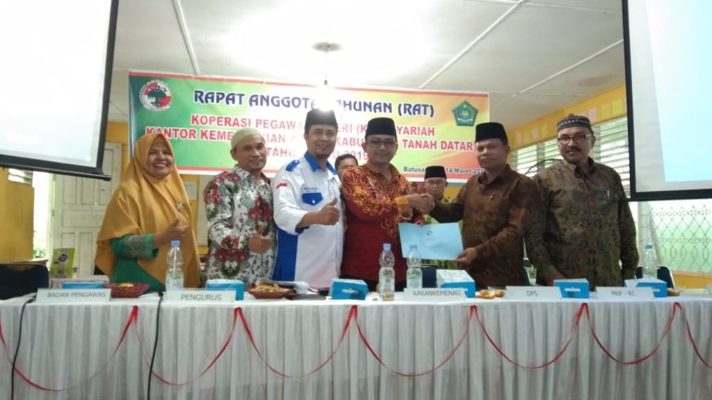 Hal tersebut disampaikannya dalam acara Rapat Anggota Tahunan (RAT) Koperasi Pegawai Negeri (KPN) Syariah Kementerian Agama (Kemenag) Kabupaten Tanah Datar Sabtu, 14 Maret 2020 di Aula MAN 2 Tanah Datar.