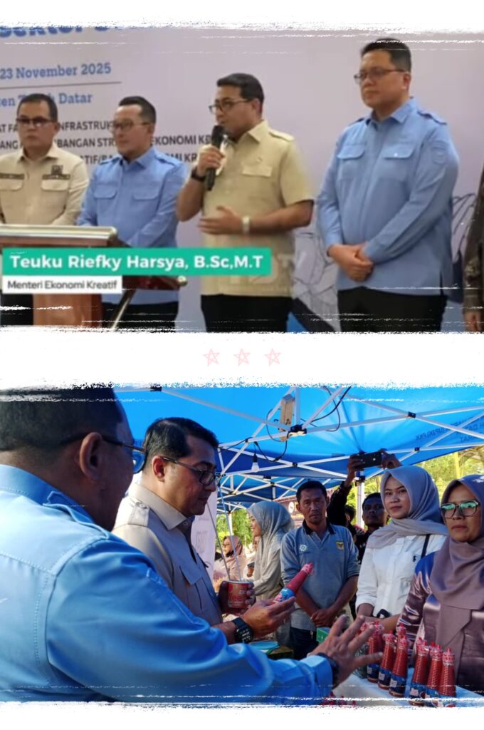 Tanah Datar (SUMBAR), HN— Ekonomi Kreatif (Ekraf) menjadi salah satu sektor yang diprioritaskan oleh Pemerintah Pusat untuk dikembangkan. Kehadiran Menteri Ekraf Dr. Teuku Riefky Harsya, B. Sc, M.T di Tanah Datar, Minggu (23/11/2025) menjadi bukti komitmen Pemerintah Pusat dalam mengembangkan Ekonomi Kreatif di daerah.