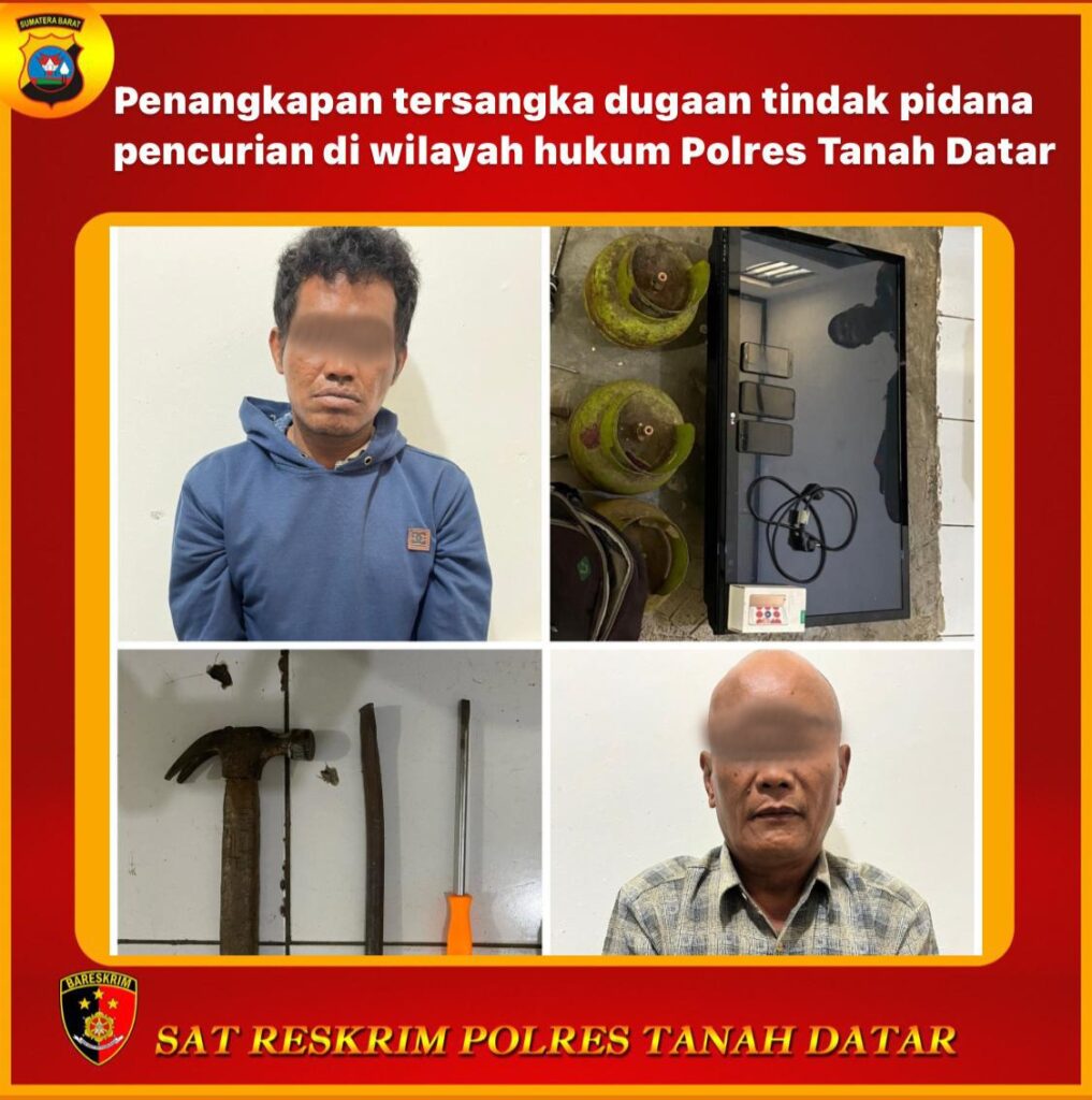 Tanah Datar (SUMBAR), HN– Polres Tanah Datar berhasil melakukan pengangkapan terhadap 2 (dua) orang terduga pelaku tindak pidana Pencurian Pemberatan.