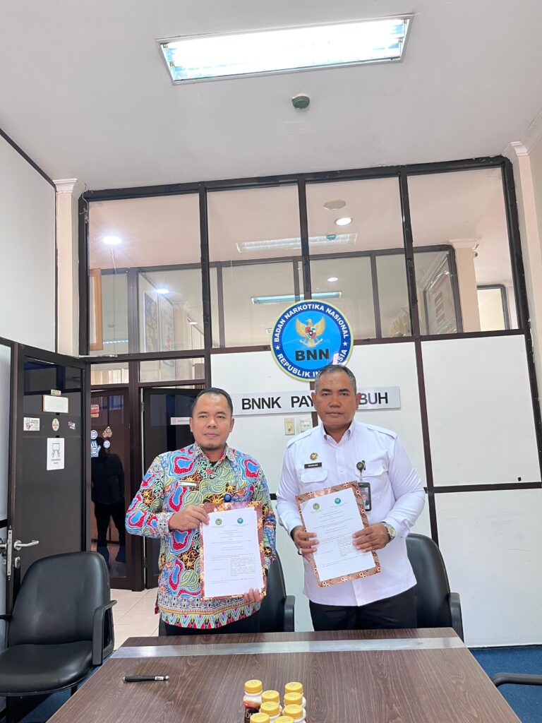 Payakumbuh, (SUMBAR) HN– Dalam langkah nyata memperkuat sinergi pemberantasan Narkoba, Kepala Lembaga Pemasyarakatan Kelas IIA Bukittinggi Nanang Rukmana bersama Kepala Badan Narkotika Nasional Kota (BNNK) Payakumbuh M. Febrian Jufril, S.E., M.Si. resmi menandatangani Nota Kesepahaman (MoU) di kantor BNNK Payakumbuh, Selasa pagi (14/10/2025).